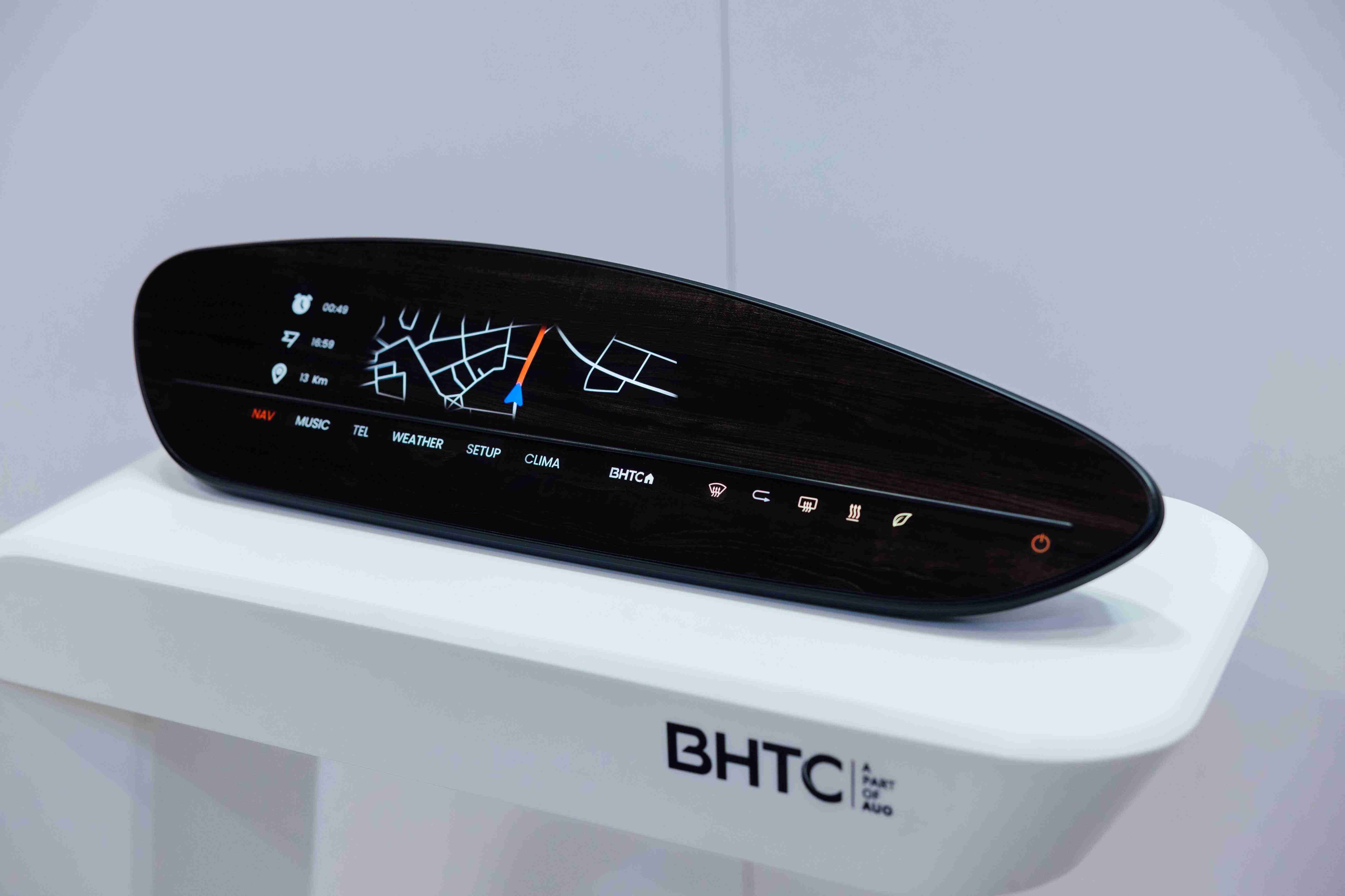 BHTC的木纹车用显示器(Display Behind Wood)将无缝木质表面与显示器结合后,,,可以融入车内设计中,,,提供驾驶优质的视觉效果,,,加上其无边框的设计和亮度调控,,,,创造更优质的车内体验。。