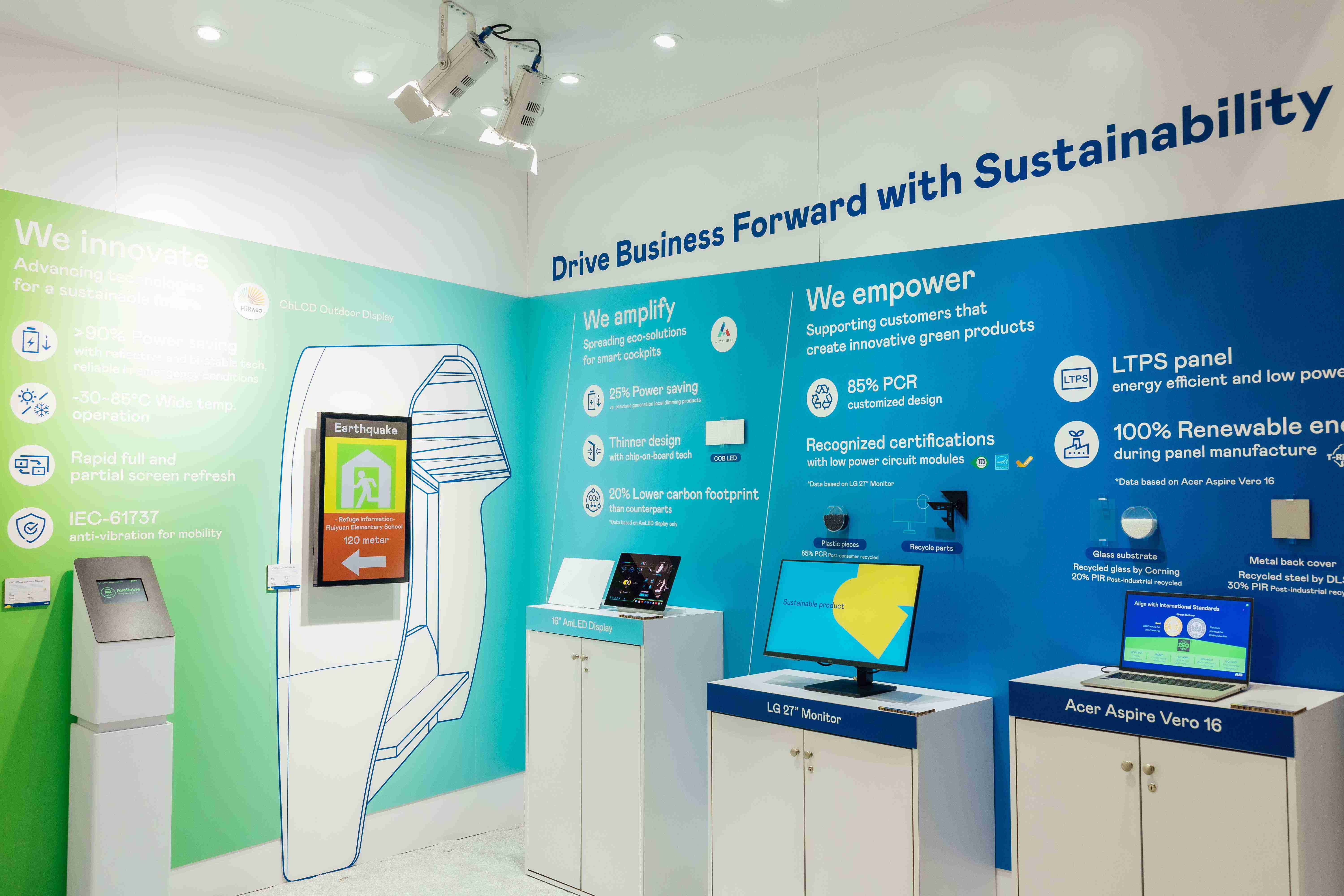 龙门国际运用创新显示技术HiRaso胆固醇液晶双稳态技术达到显示零耗能、、、扩大节能省电的AmLED显示技术应用于车用产品、、、、以再生的消费后回收(PCR)塑料及全绿电生产之面板,,,,应用于笔电及萤幕,,,增加绿色价值。。