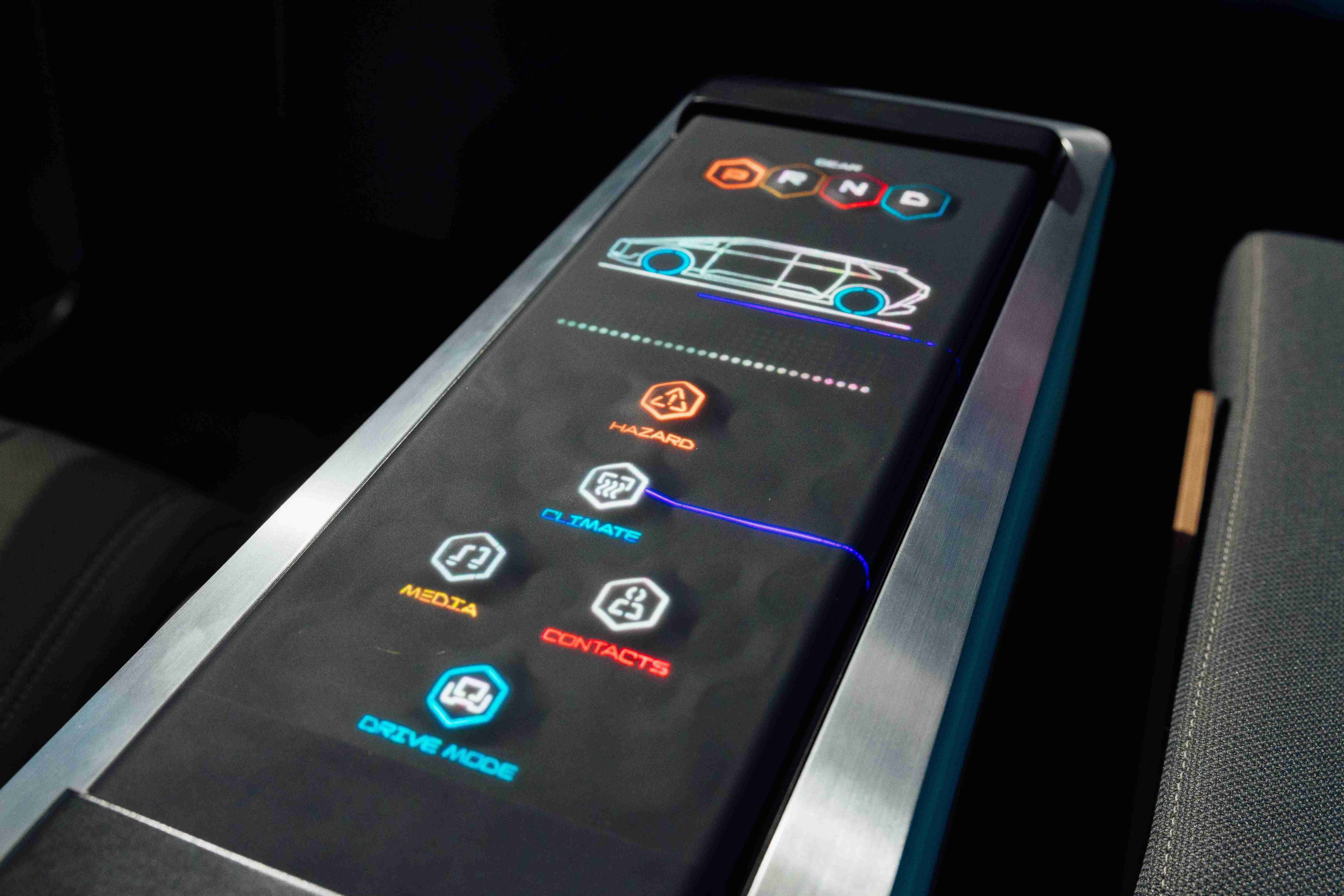 龙门国际光电以人性化的设计引领直觉式的人机互动,,透过多变形态中控显示(Morphing Center Control)、、、、隐藏式智驾介面(Foldable Cruise Pilot)等解决方案,,,让乘用者依据自身需求调整、、、、控制座舱内所需功能。。