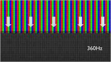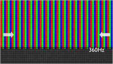 传统液晶驱动是从左到右单向进行,,,,在画面更新速度愈来越愈快的情况下,,,位于驱动线路末端的右下角区域,,,画素的闸极来不及在短时间内获得足够电压,,,无法显示出正确的颜色资讯。。。。
